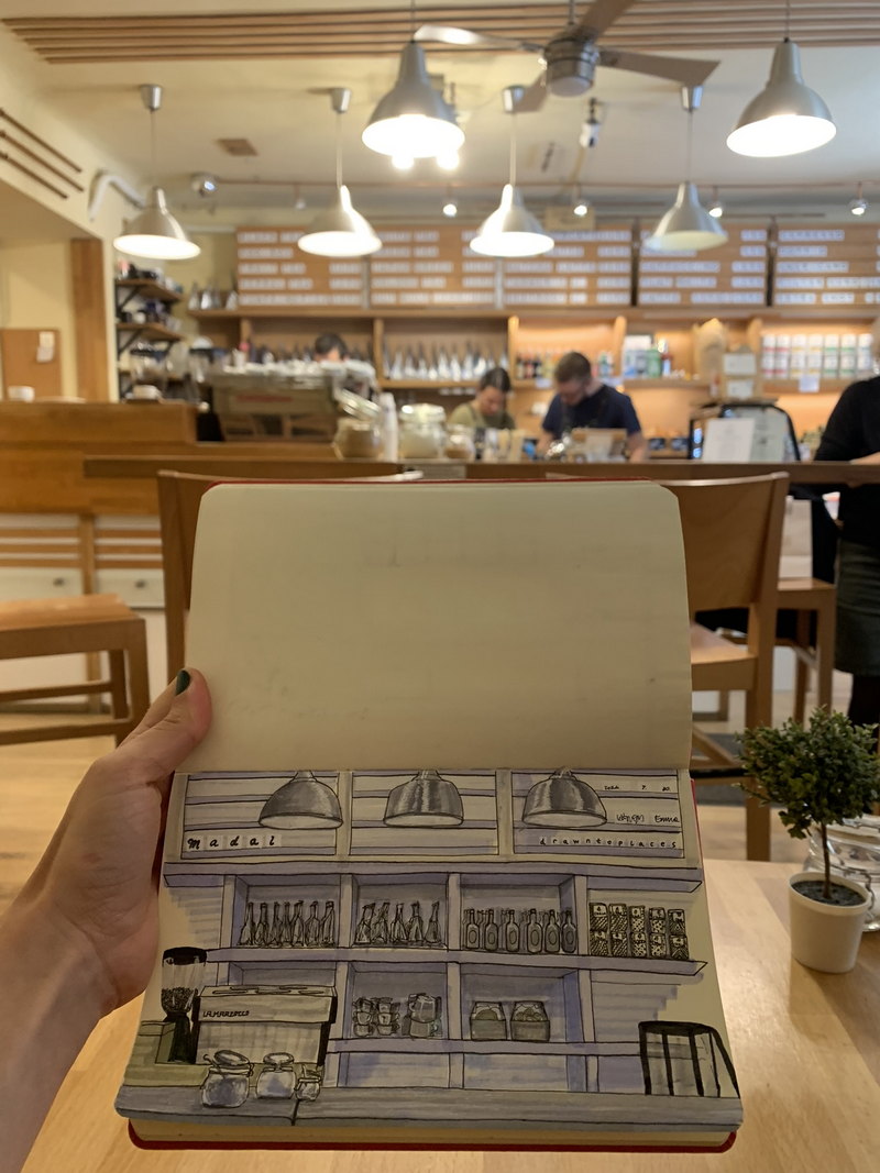 ☕️ | 💻 Madal is one of Budapest’s first specialty coffee shops, with the first location (Hollán Ernő utca) opened in 2013, and now three more locations in the city: • Ferenciek tere 3, 1053 Budapest • Alkotmány utca 4, 1054 Budapest • Király utca 7, 1075 Budapest Inspired by peace philosopher Sri Chinmoy, this friendly spot aims to create a peaceful escape in the city. They roast their own coffee weekly, and their spacious interior is perfect for getting some laptop work done. This is drawing no.53 in sketchbook vol.1 and day 1 of the Inktober2024 challenge.